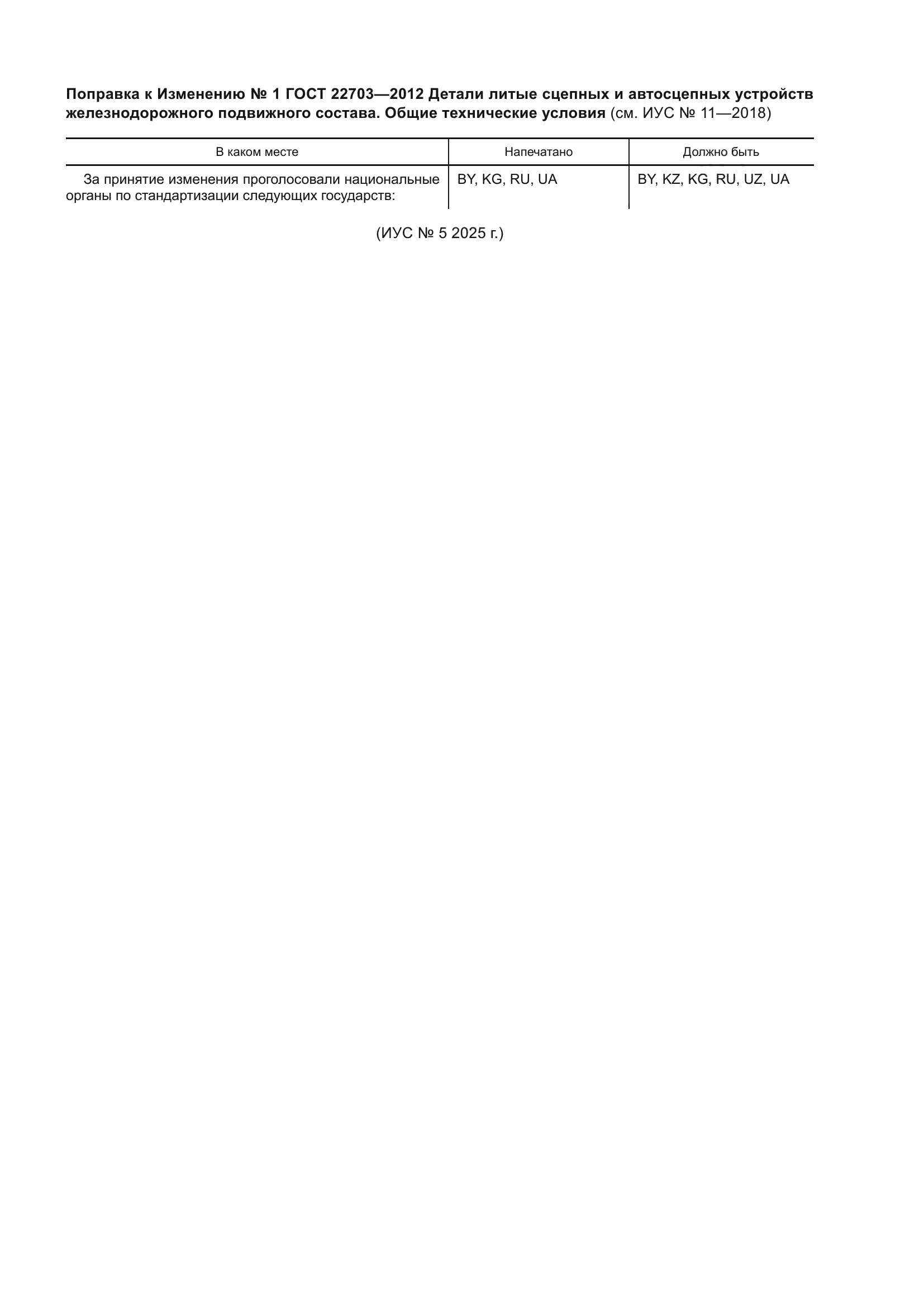 Изменение к ГОСТ 22703-2012. Поправка к изменению