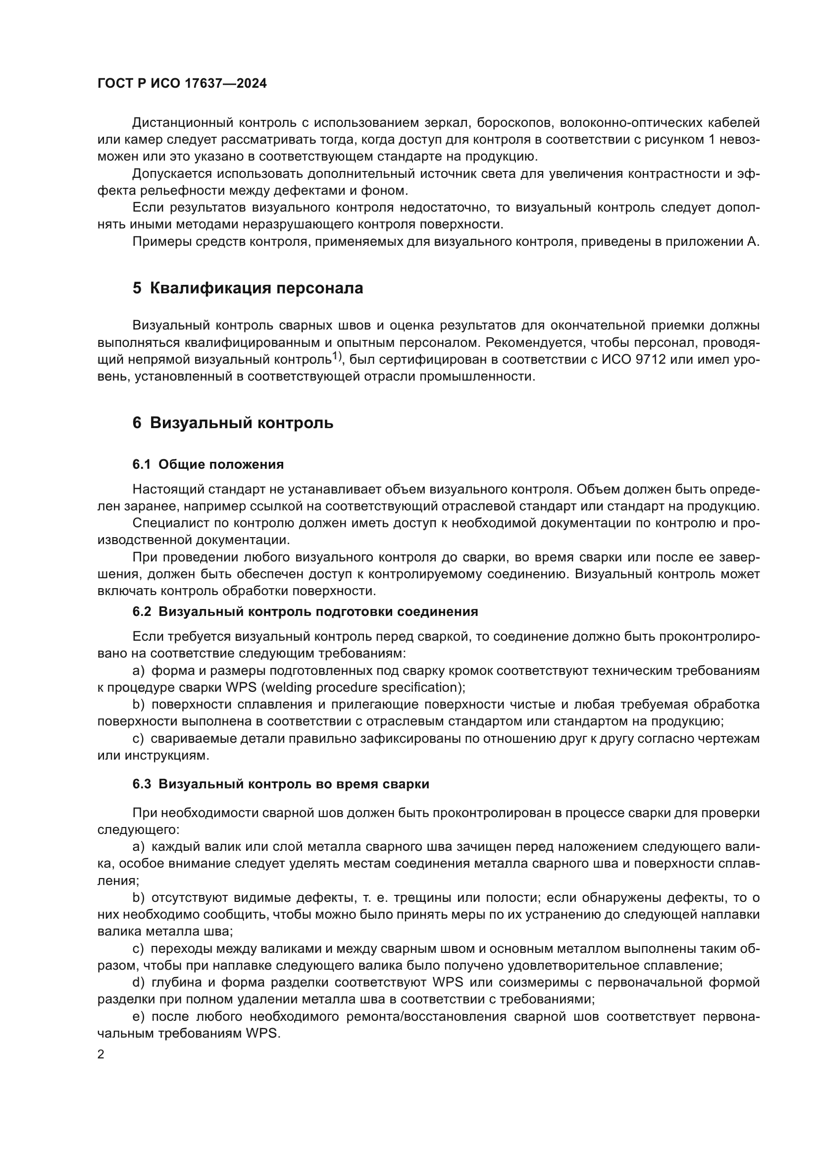 Скачать ГОСТ Р ИСО 17637-2024 Неразрушающий контроль сварных швов. Визуальный контроль соединений, выполненных сваркой плавлением