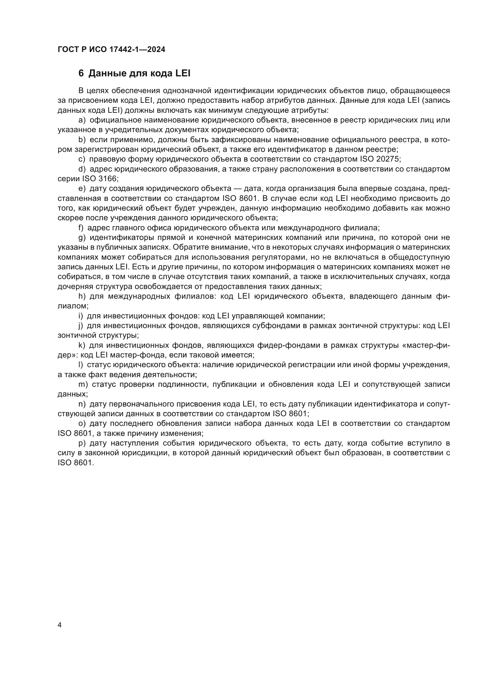 Настоящий документ определяет минимальный набор элементов для схемы присвоения уникальных идентификаторов юридических объектов (Legal Entity Identifier, LEI), которая позволяет идентифицировать юридические объекты, участвующие в любой финансовой операции. Документ применим к «юридическим объектам». Этот термин включает, помимо прочего, уникальных лиц, которые несут юридическую или финансовую ответственность за исполнение обязательств в рамках финансовых операций или обладают в своей юрисдикции правом самостоятельно заключать законные сделки, независимо от того, учреждены или созданы ли они в какой-либо другой форме (например, в форме траста или партнерства либо на основании договора). К юридическим объектам не относятся физические лица, но относятся государственные и наднациональные организации, а также частные лица, действующие в качестве предпринимателей. Также данный термин включает международные филиалы в соответствии с определением, данным в подразделе 3.5