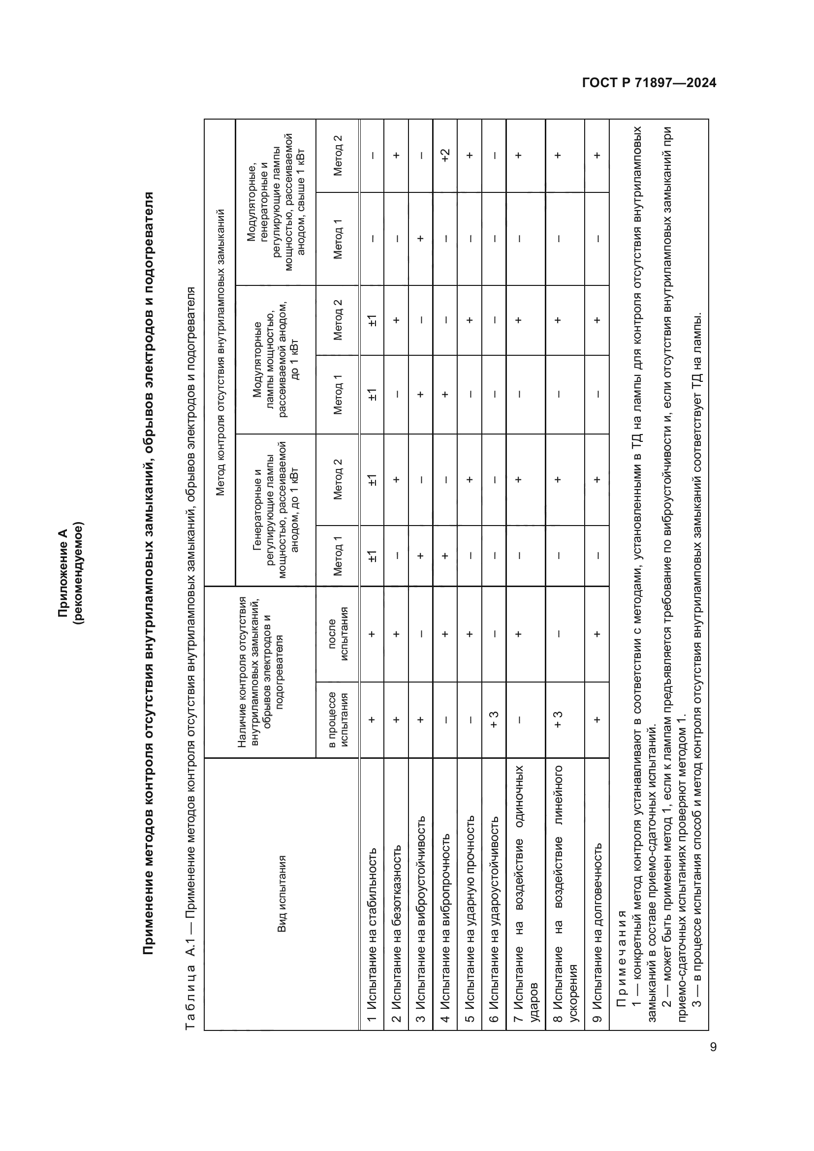 Настоящий стандарт распространяется на генераторные, модуляторные и регулирующие лампы мощностью, рассеиваемой анодом, свыше 25 Вт и устанавливает методы контроля отсутствия внутриламповых замыканий, метод контроля отсутствия внутриламповых замыканий между катодом и подогревателем, метод контроля отсутствия обрывов электродов и подогревателя, а также их применяемость. Для контроля отсутствия внутриламповых замыканий (кроме замыканий между катодом и подогревателем) стандарт устанавливает следующие методы: метод 1 – контроль по изменению тока электрода, фиксируемому индикаторным устройством; метод 2 – контроль по выполнению заданных параметров электрического режима; метод 3 – контроль по изменениям сопротивления междуэлектродных промежутков нормированной длительности