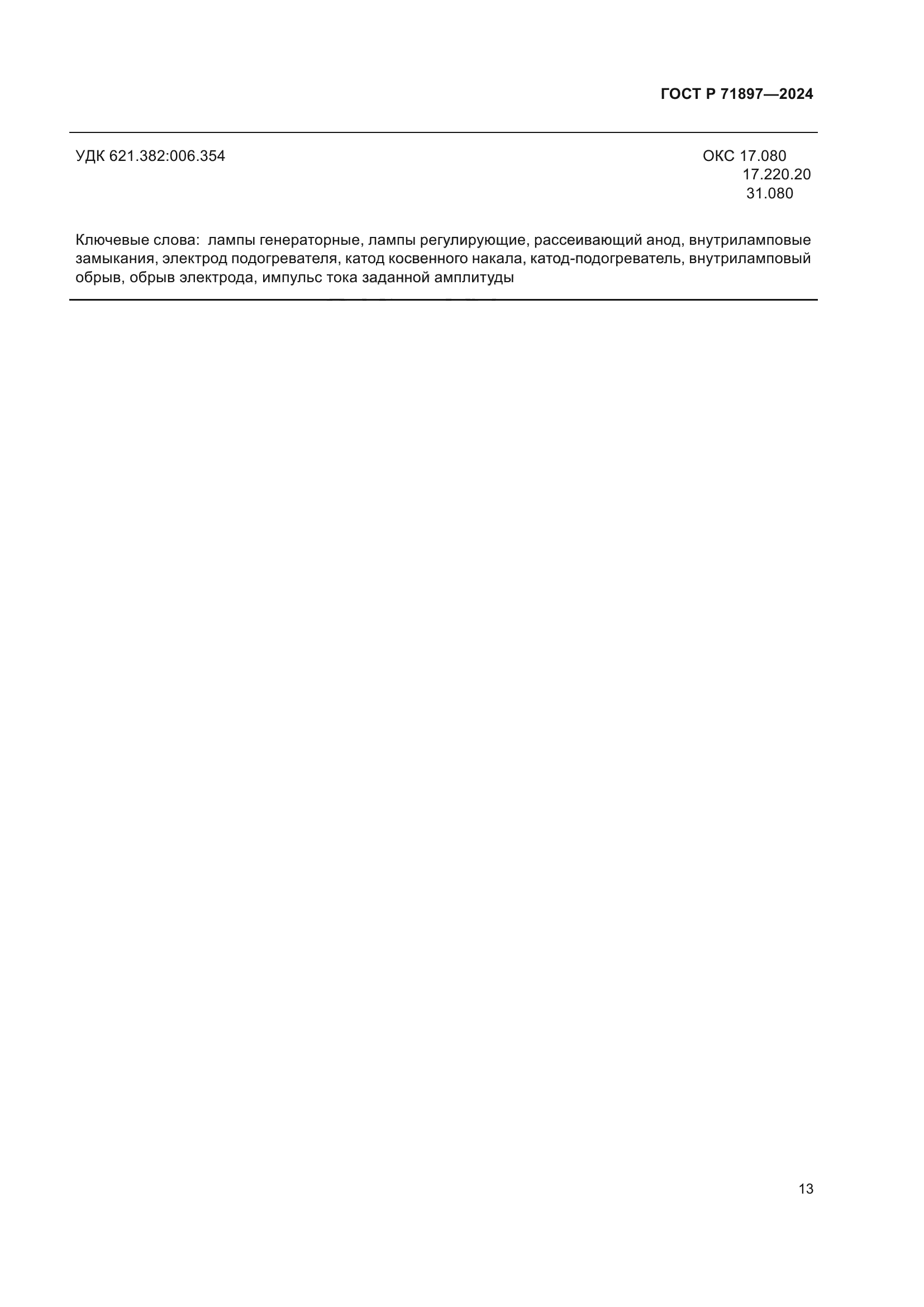Скачать ГОСТ Р 71897-2024 Лампы генераторные, модуляторные и регулирующие мощностью, рассеиваемой анодом, свыше 25 Вт. Методы контроля отсутствия внутриламповых замыканий и обрывов электродов подогревателя