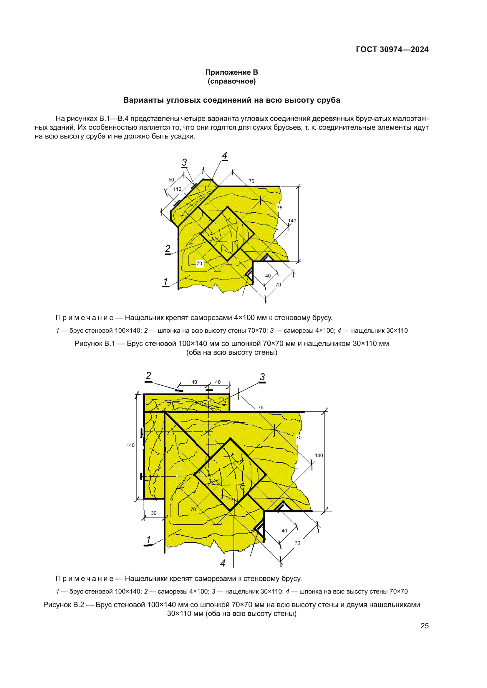Скачать ГОСТ 30974-2024 Соединения угловые деревянных брусчатых и бревенчатых малоэтажных зданий. Классификация, конструкции, размеры