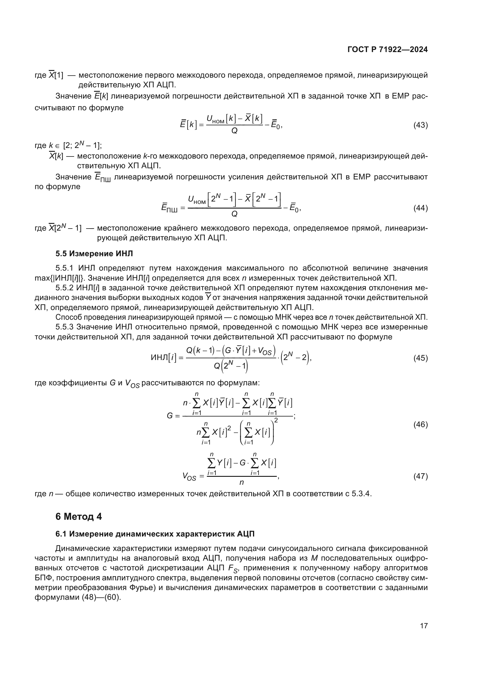 Область применения:Настоящий стандарт распространяется на интегральные микросхемы линейных аналого-цифровых преобразователей (АЦП) напряжения в цифровой код с числом эквивалентных двоичных разрядов до 32 включительно и устанавливает методы измерения следующих параметров: - напряжения межкодового перехода; - погрешности смещения; - погрешности усиления; - линеаризуемой погрешности в заданной точке характеристики преобразования; - линеаризуемой погрешности смещения; - немонотонности характеристики преобразования; - дифференциальной нелинейности (ДНЛ); - интегральной нелинейности (ИНЛ); - отношения сигнал/шум (SNR); - отношения сигнал/шум и искажения (SINAD); - диапазона, свободного от гармонических искажений (SFDR); - полных нелинейных искажений (THD); - интермодуляционных искажений m-ого порядка (IMD2,m)