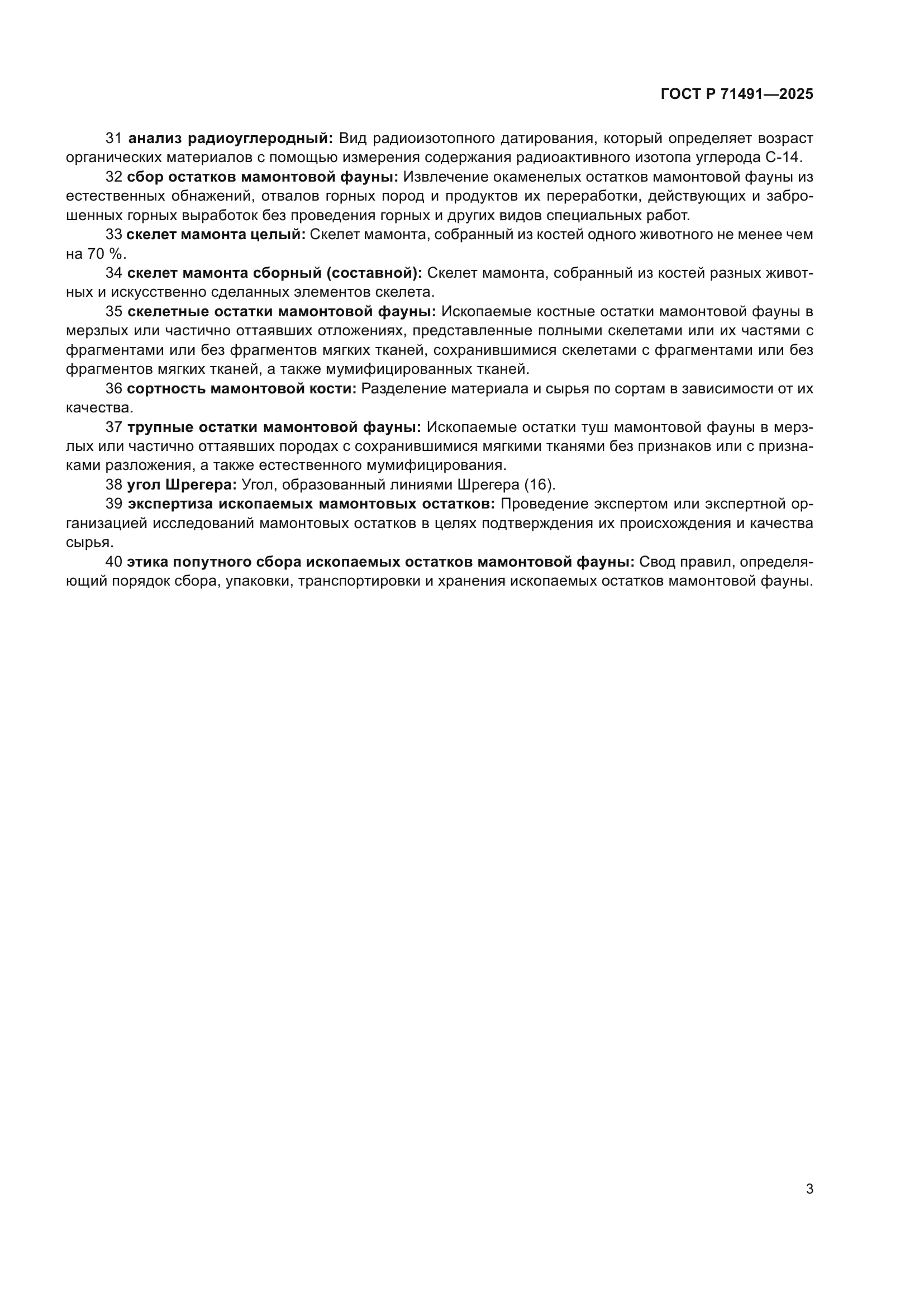 Скачать ГОСТ Р 71491-2025 Ископаемые остатки мамонтовой фауны. Термины и определения