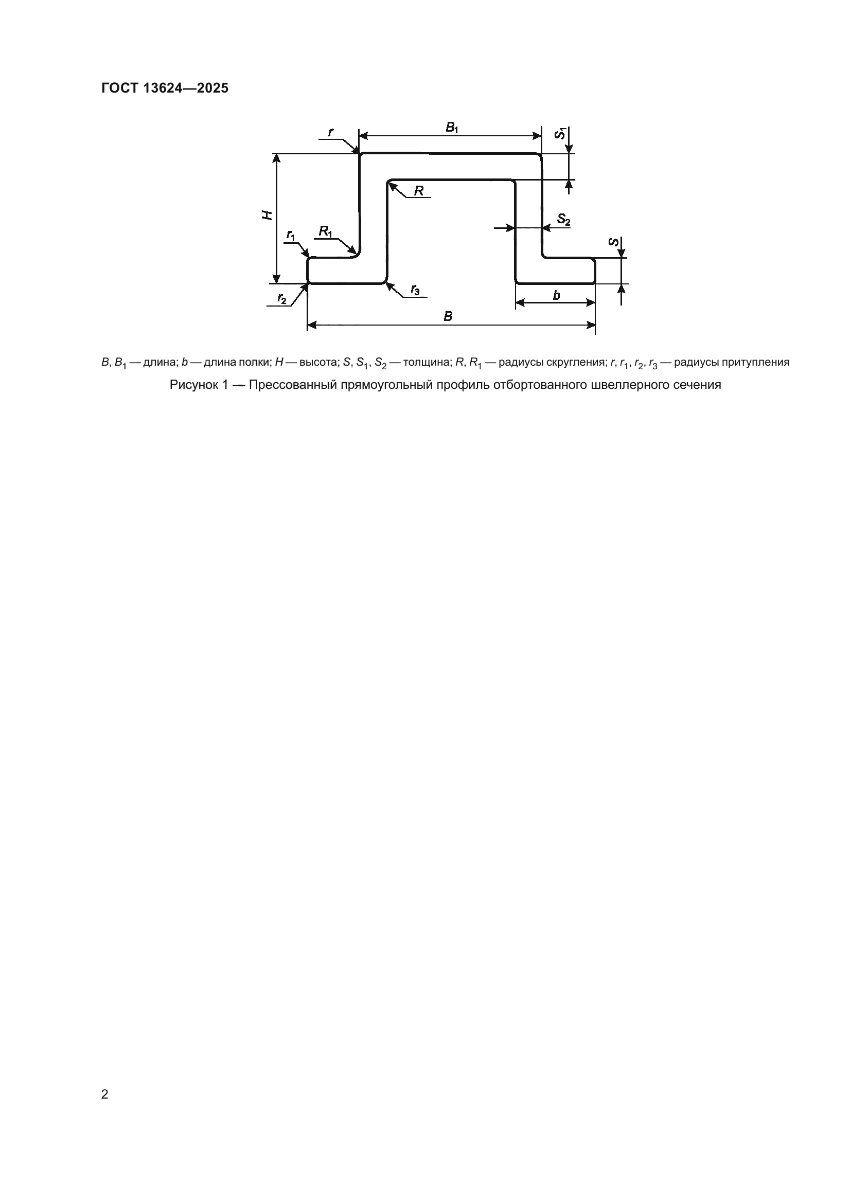 Скачать ГОСТ 13624-2025 Профили прессованные прямоугольные отбортованного швеллерного сечения из алюминия, алюминиевых и магниевых сплавов. Сортамент