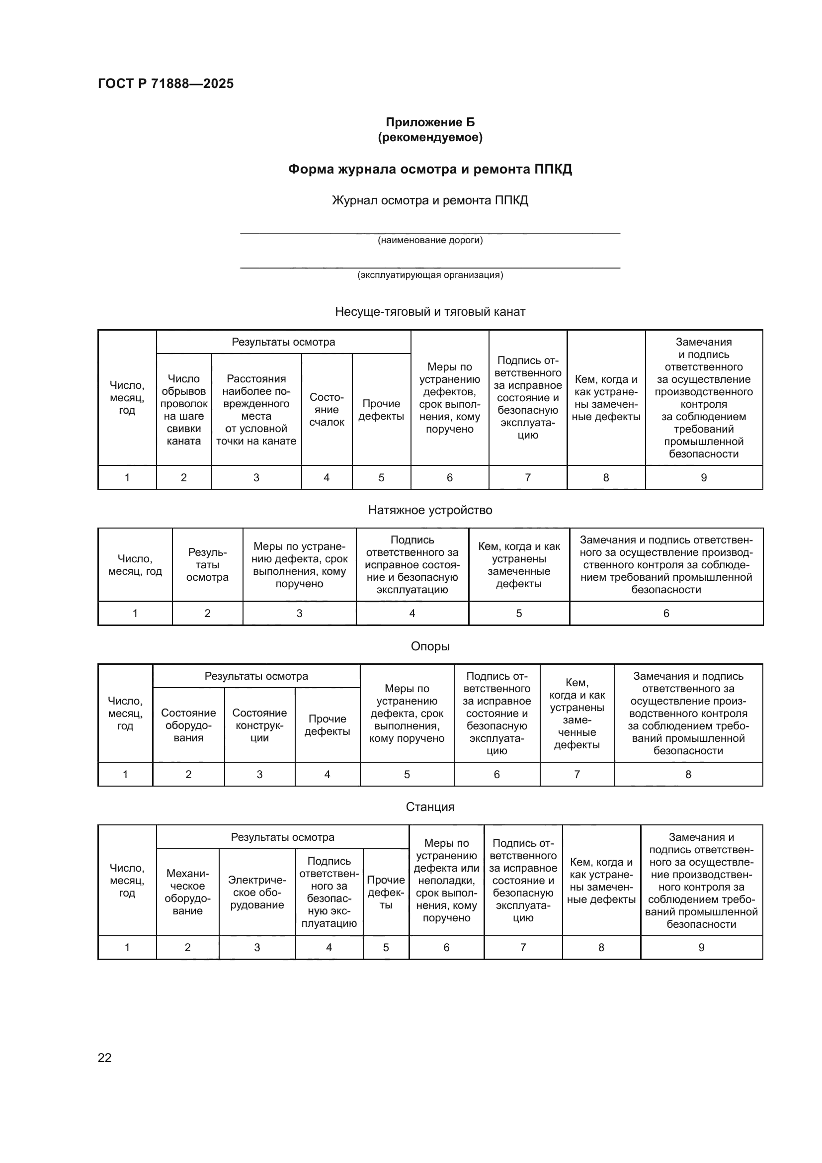 Область применения: | Настоящий стандарт устанавливает требования к процессам эксплуатации подвесных пассажирских канатных дорог (ППКД), а также определяет порядок и методы оценки их работоспособности путем проверок, ревизий, осмотров, проведением технических обслуживаний, технических освидетельствований, экспертиз промышленной безопасности, включая их периодичность и объем работ, установление браковочных показателей, требования к условиям проведения испытаний. Требования настоящего стандарта направлены на обеспечение безопасности процессов по перемещению людей на ППКД |
