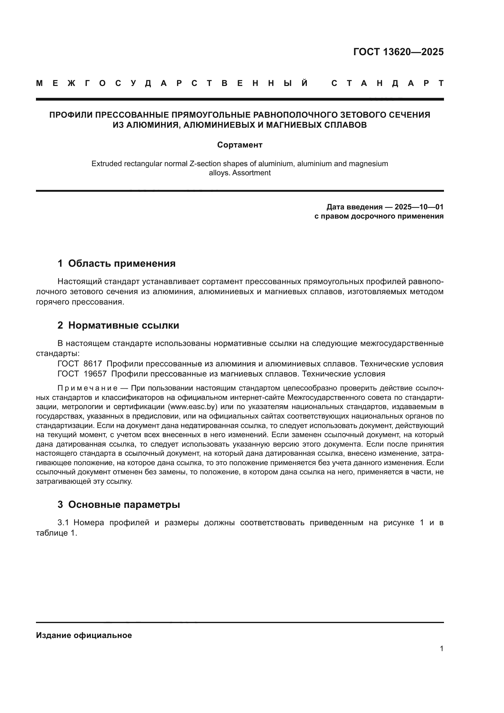 Скачать ГОСТ 13620-2025 Профили прессованные прямоугольные равнополочного зетового сечения из алюминия, алюминиевых и магниевых сплавов. Сортамент